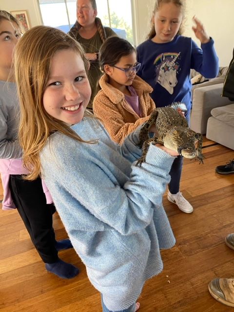 We bring an array of animals with us this includes a crocodile, skinks, pythons, a frilled neck lizard, ridge tail monitor, turtle and frog. We also offer a one of a kind experience with our massive Perentie, an Aussie legend and the 4th largest lizard in the world! Weighing 15kg and measuring 1.85 meters long.